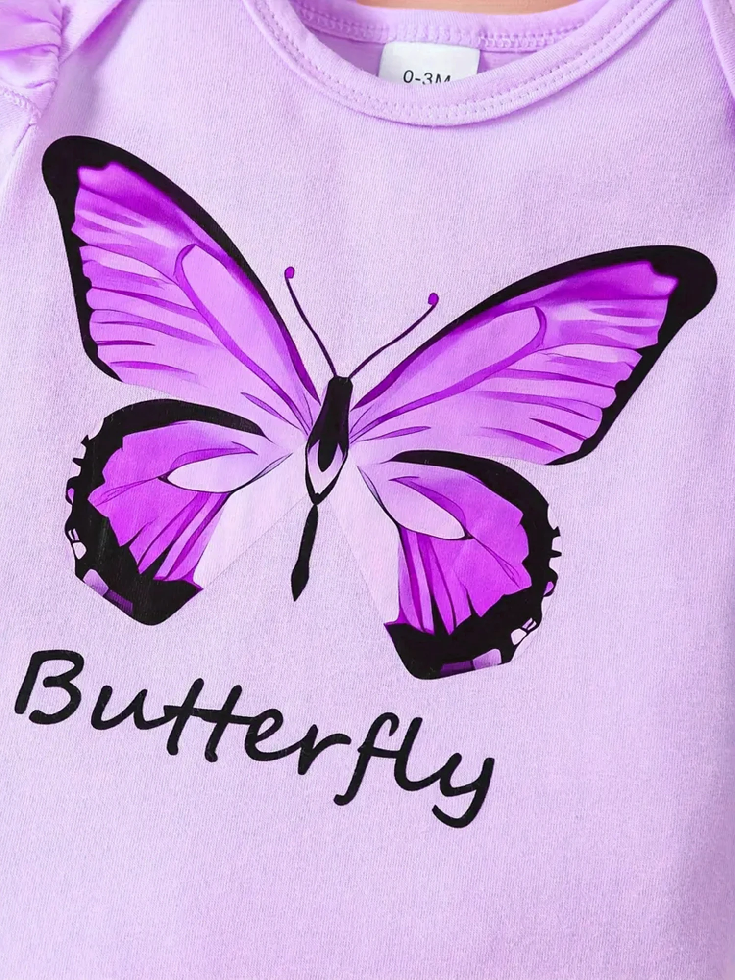 Baby Girl Butterfly Outfit Short Sleeve Romper Elastic Waist Ruffle Shorts Bow Headband 3 Piece SetSize (cm)